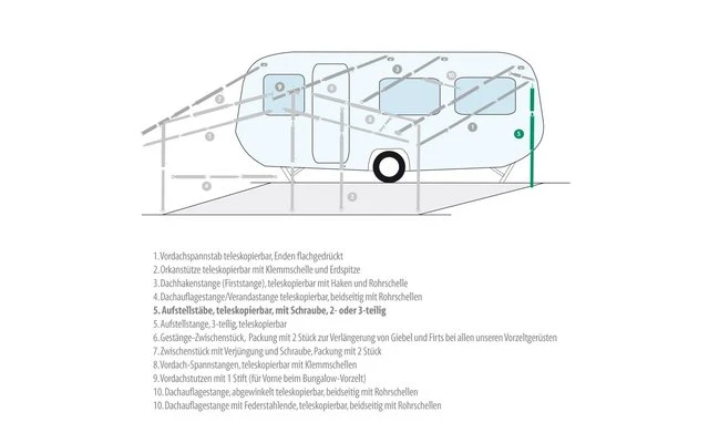 Teleskopierbar. Z.B. für Sonnendächer und Seiten- und Vorderwände. Mit Schraube, 2 – oder 3-teilig.