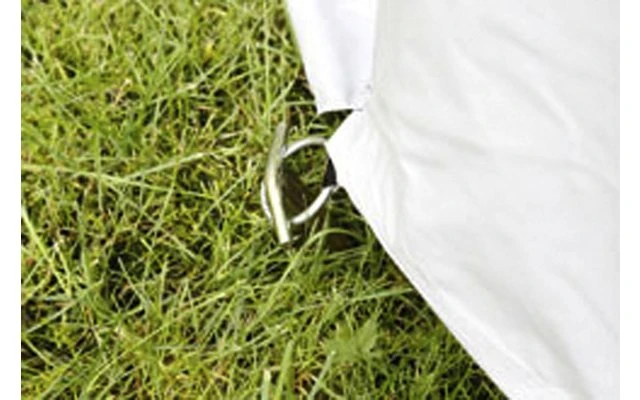 Effektives Sturmsicherungs-Set für Vorzelte und Sonnendächer. Stabilisiert das Gerüst bei starken Windverhältnissen und verhindert dadurch den Verschleiß des Dachstoffes. Einfache Anbringung vom Gestängewinkel ausgehend, der Aufstellstange entlang bis zum Bodenhering. Das Set besteht aus 2 robusten Abspannbändern und 2 robusten T-Eisenheringen. Mit praktischem Packbeutel.