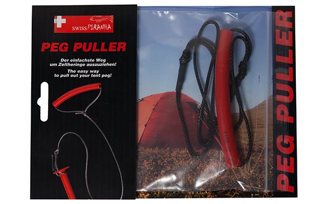 Mit dem PegPuller entfernt man schnell und rückenschonend bombenfest sitzende SwissPiranha Heringe. Einfach die Schlinge unter den Kopf des Herings legen und nach oben ziehen – so einfach ist das! Die dünne Schnur aus hochreißfestem Dyneema ist mit einem bequemen Griff ausgerüstet. Federleicht und mini im Packmaß findet der SwissPiranha PegPuller in jeder Hosentasche Platz. Na dann: Full Pull!