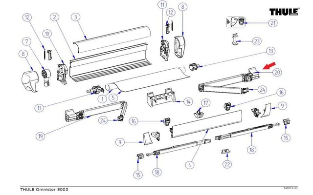 Thule Gelenkarm (rechts) für Markisenlänge ab 3m, passend zu Thule Omnistor 5003
